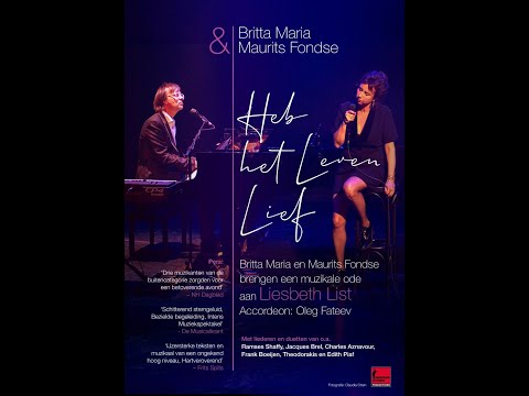 In de voorstelling ‘Heb het Leven Lief’ brengen zij een ode aan de prachtige zangeres Liesbeth List, aan haar muziek en haar leven. Ze spelen de mooiste Nederlandse en Franse liederen en duetten die zij ooit zong. Van Ramses Shaffy, Jacques Brel, Charles Aznavour, Frank Boeijen, Theodorakis, Edith Piaf en de grote Nederlandse componisten die voor Liesbeth schreven. Op authentieke wijze en vol emotie gebracht door zangeres Britta Maria. Met een muzikaal ensemble onder leiding van pianist/zanger Maurits Fondse.